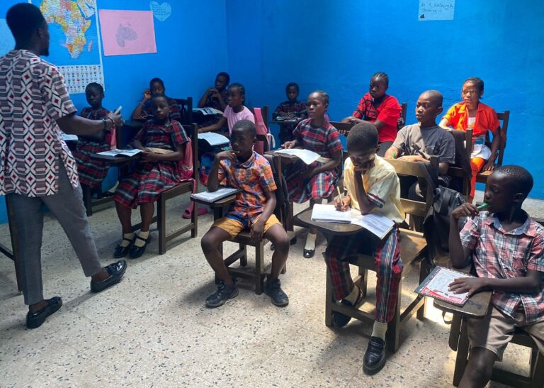 The academy serves families in the Congo Town community, providing consistent schooling where many children otherwise go without it.